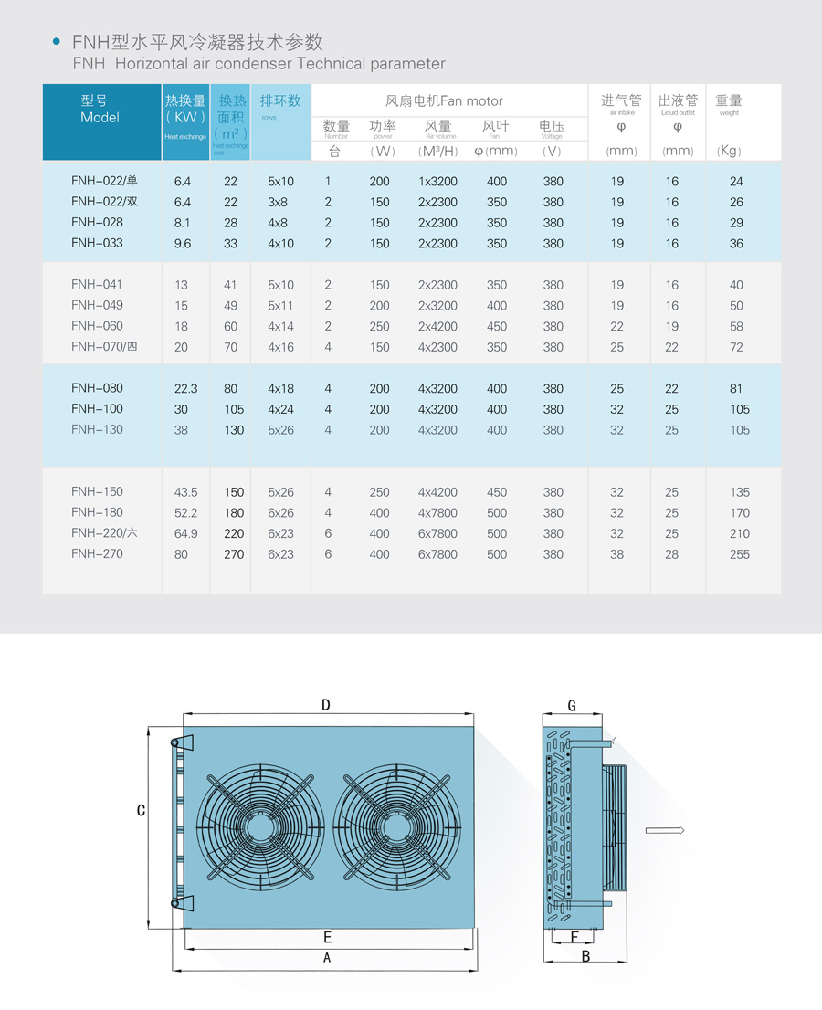 2、采用側出風形式,風機配用一(yī)到四個(gè)電機, 散熱均勻(yún),配套(tào)用於半(bàn)封閉(bì)和(hé)全封閉機組。